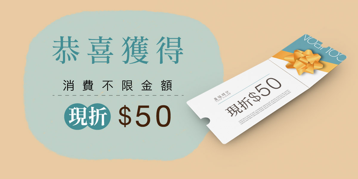 1.訂單消費不限金額現折$50,每人限用1次,使用期限只到2024/3/24