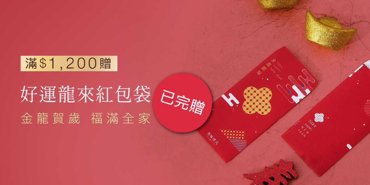 5.折抵後滿$1,200贈好運龍來紅包袋1入,數量有限,送完為止,系統未顯示贈禮即表示已完贈,恕不另行通知