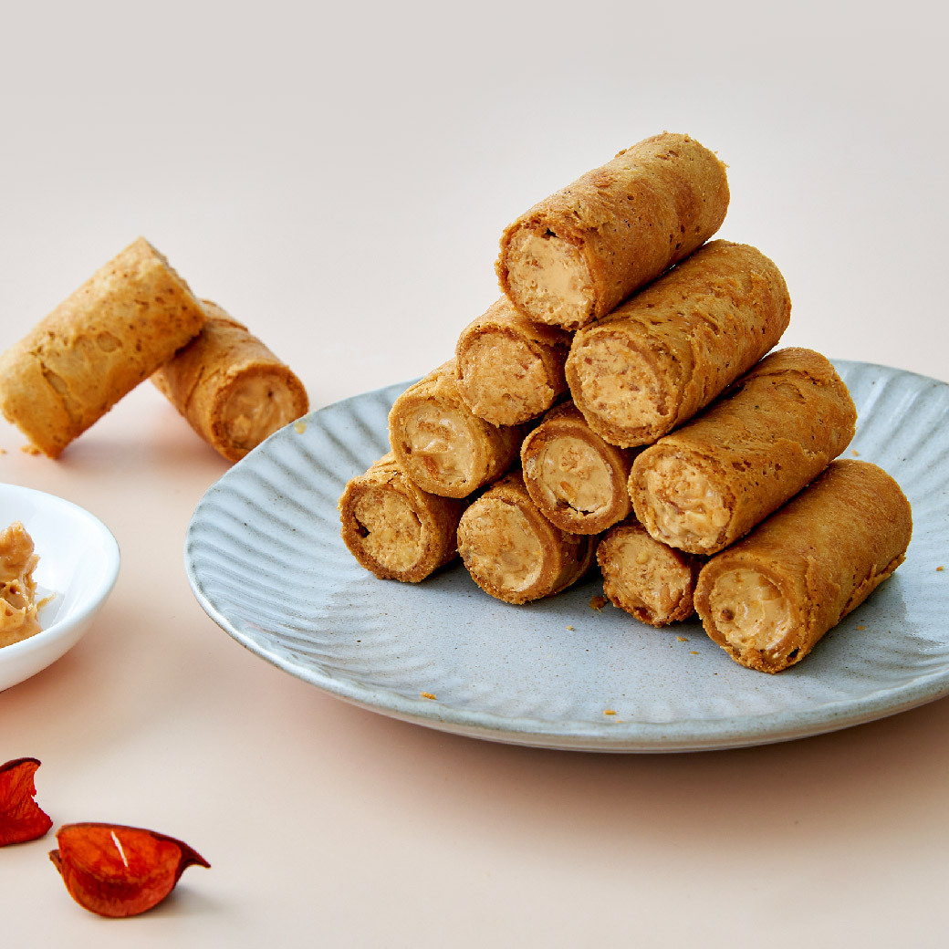 這些原物料組合讓每一口奢蛋捲都充滿了層次感,椰醣帶出的天然焦糖香氣、薄力粉帶來的酥脆外皮、無水奶油為基底形成的豐潤內餡,品味奢蛋捲的獨特風味,令今年佳節送禮別具新意!