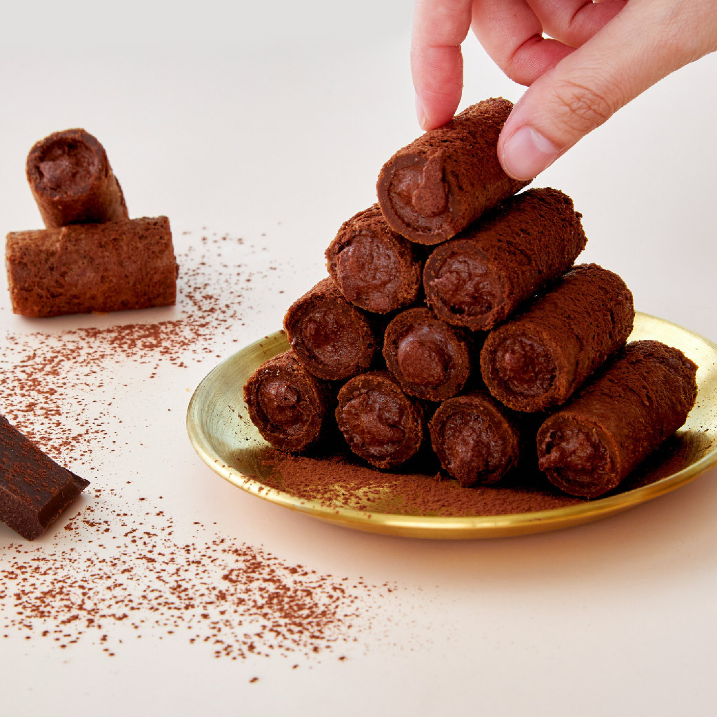融合100%與73%頂級比利時巧克力,苦甜回甘厚韻搭配蛋捲酥皮焦香,構成屬於成熟大人的輕奢饗宴。