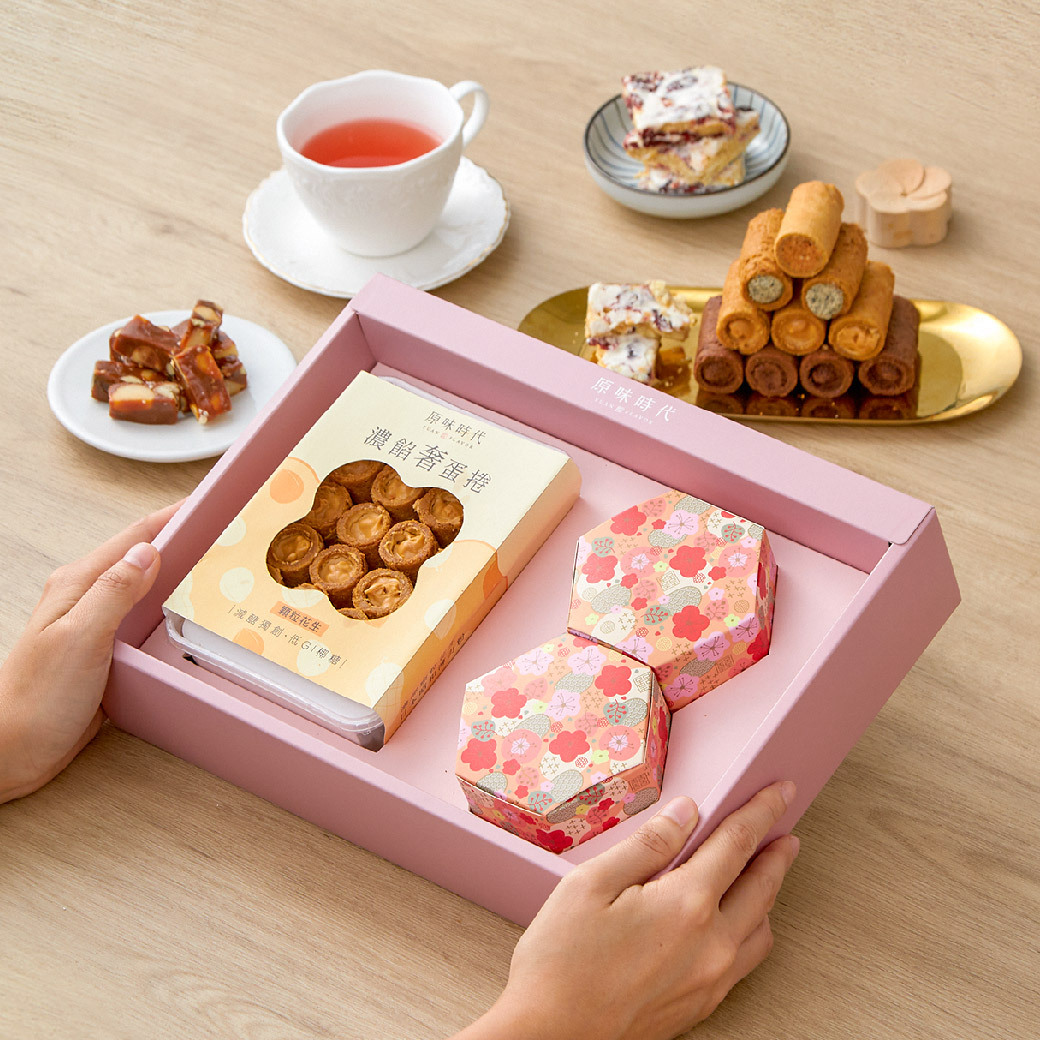 原味時代經歷幾年時間精心開發這款「低GI椰醣奢蛋捲」,小巧一口吃設計、濃郁滑順內餡、用料天然無添加,解決你擔心「量大吃不完」、「吃多擔心熱量破表」等煩惱,滿足你對健康的要求,口味更是豐富多選擇,同時讓這份送禮心意更加特別!