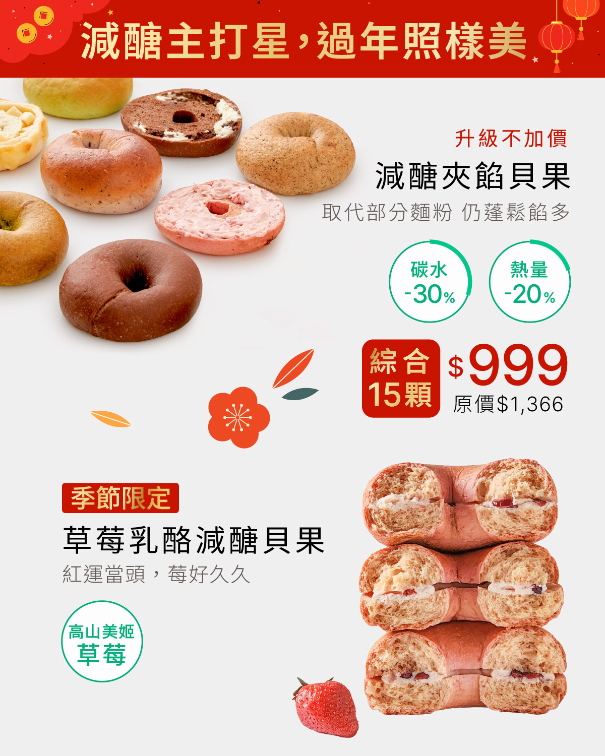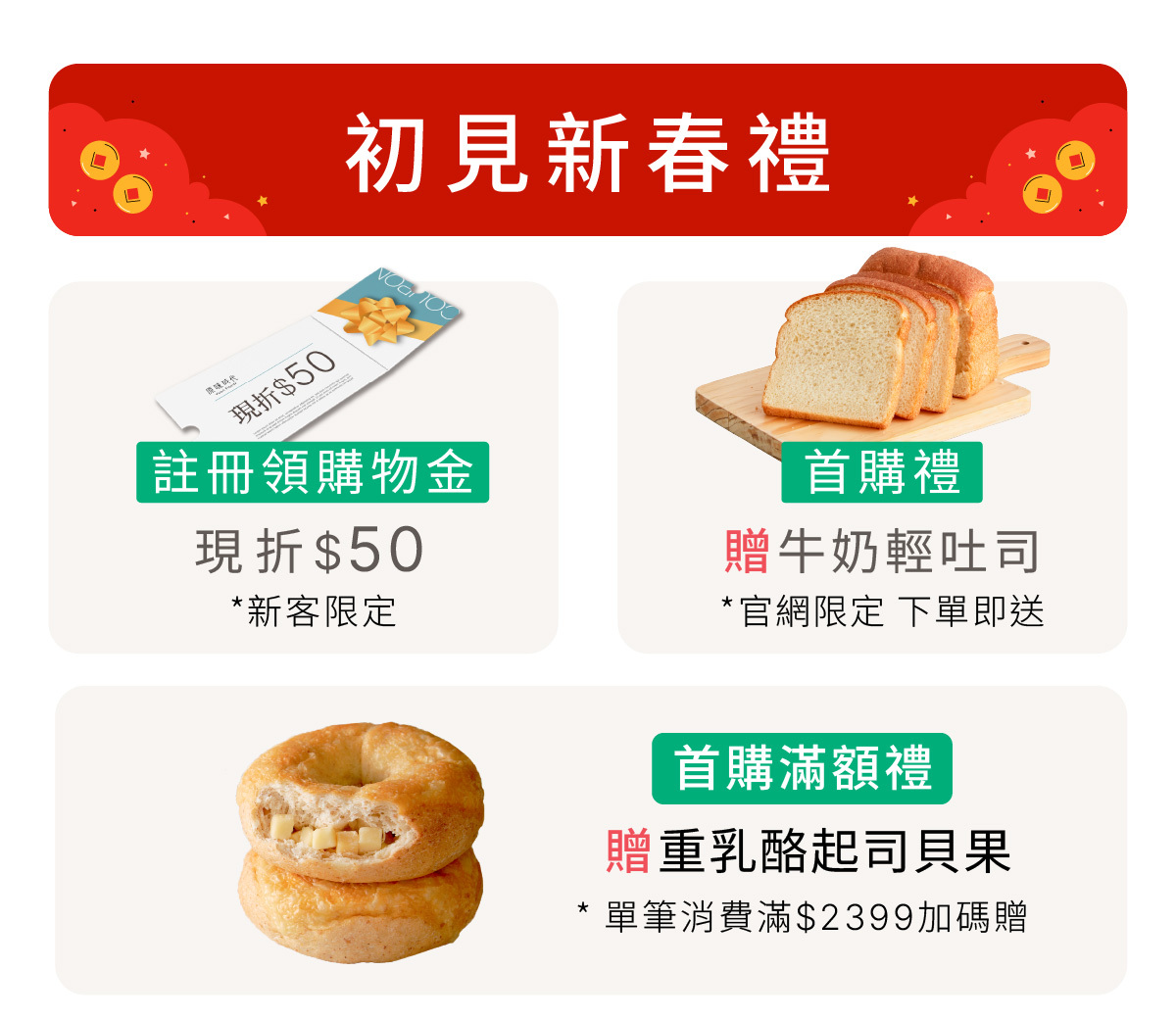 4.首購新客:單筆消費折抵後滿$2,399加碼贈重乳酪起司減醣貝果1入