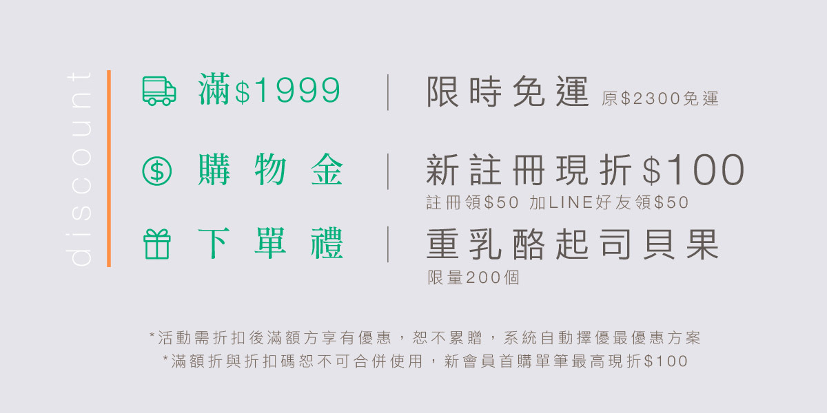 1.註冊即享$50購物金,折扣滿$699可即可折抵