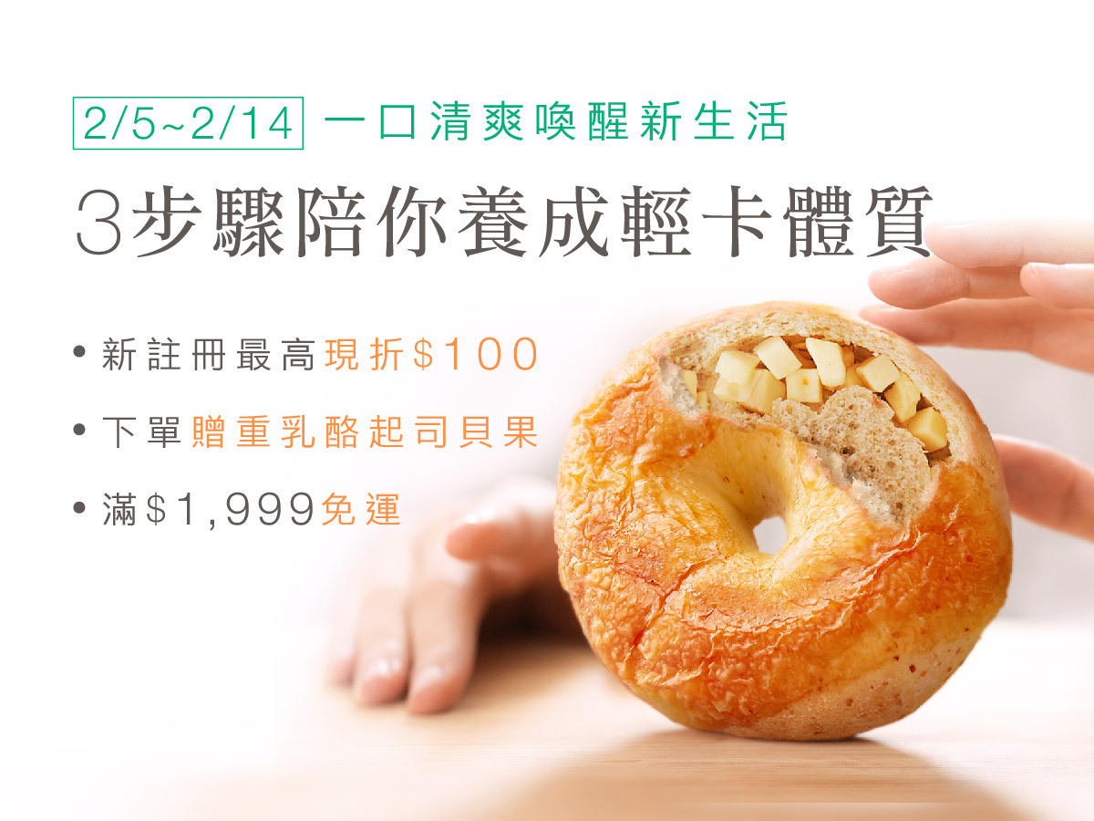 3.每筆訂單不限金額,凡買就送重乳酪起司貝果1入,數量有限,送完為止,系統未顯示贈禮即表示已完贈,恕不另行通知