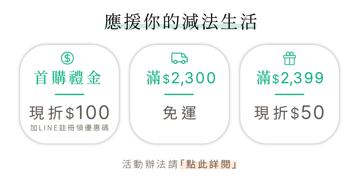2.全館活動滿額折與折扣碼恕不可合併使用,新會員首購單筆最高現折$100