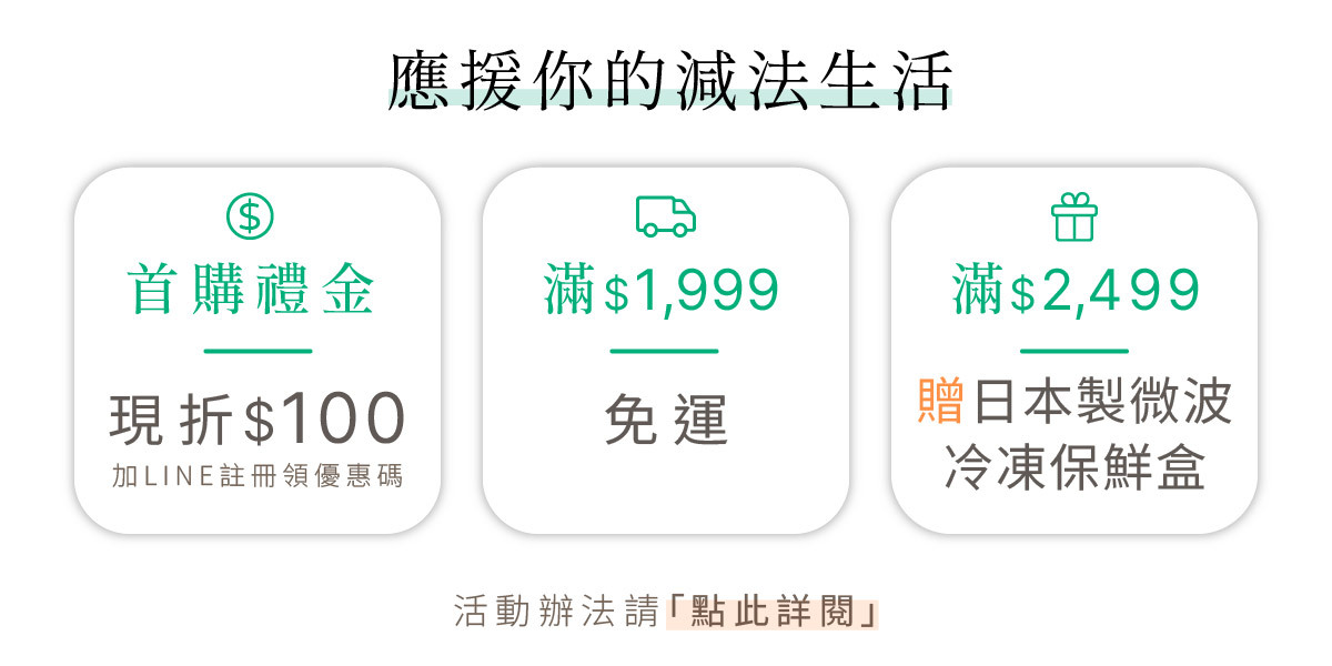 1.註冊會員並加入原味時代LINE官方帳號,即可領取$100折扣代碼,折扣滿$699即可折抵,每人限用1次