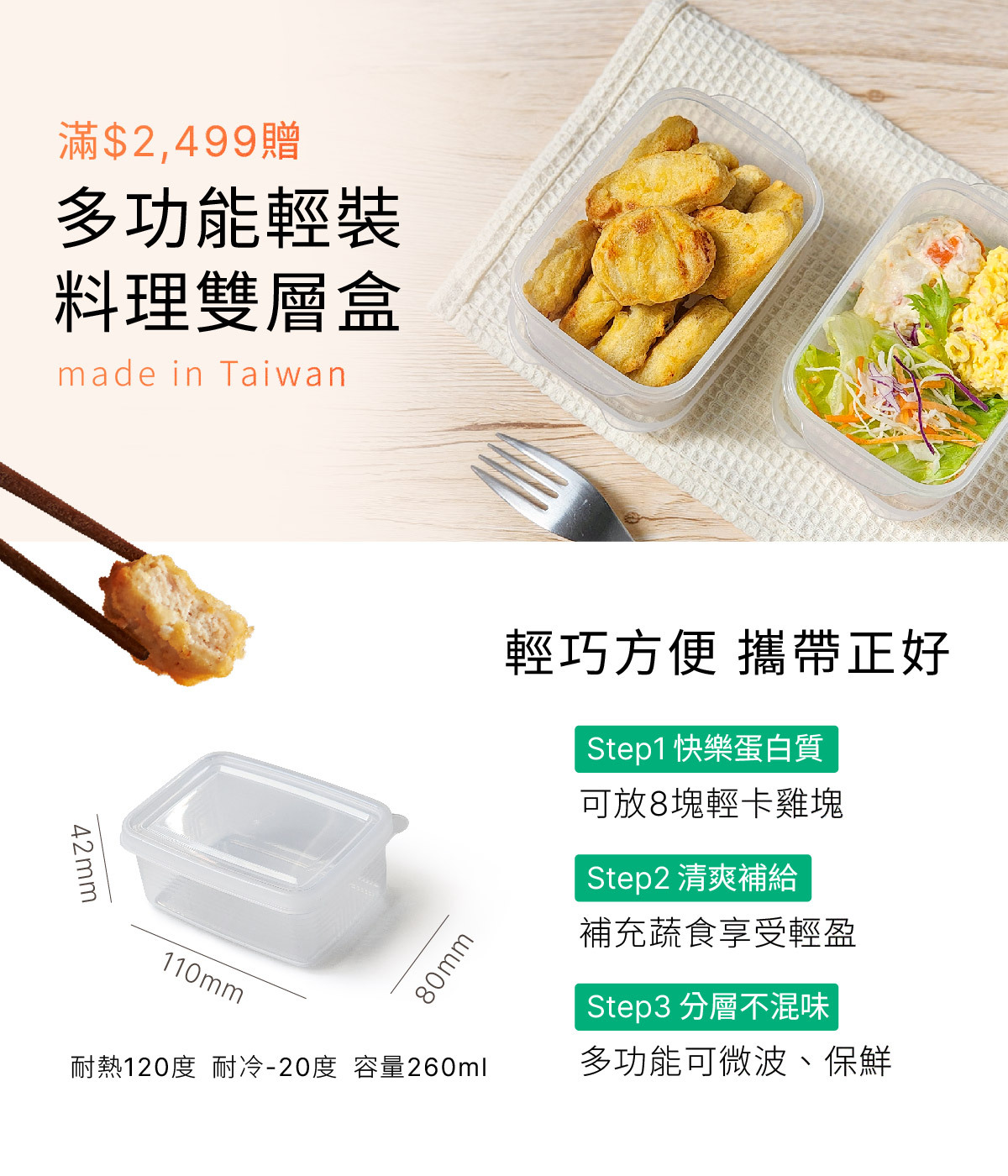 3.折抵後滿$2499贈多功能輕裝料理雙層盒2入