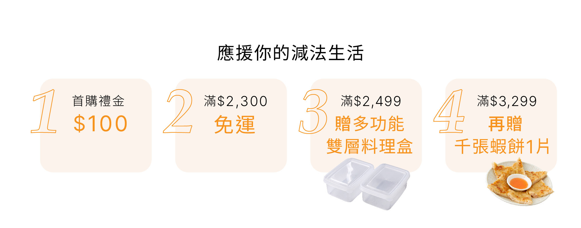 4.折抵後滿$3299贈千張月亮蝦餅1片+多功能輕裝料理雙層盒2入