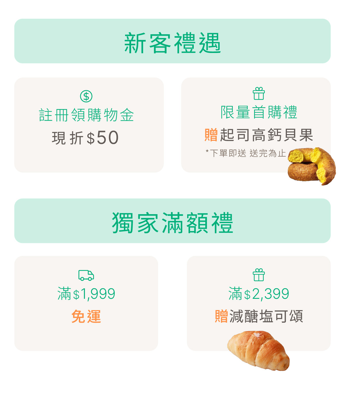 2.首購新客下單贈帕瑪森起司元氣高鈣貝果1入 *限冷凍商品