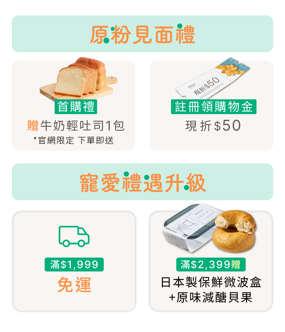 2.首購新客下單贈牛奶輕吐司1包 *限冷凍商品