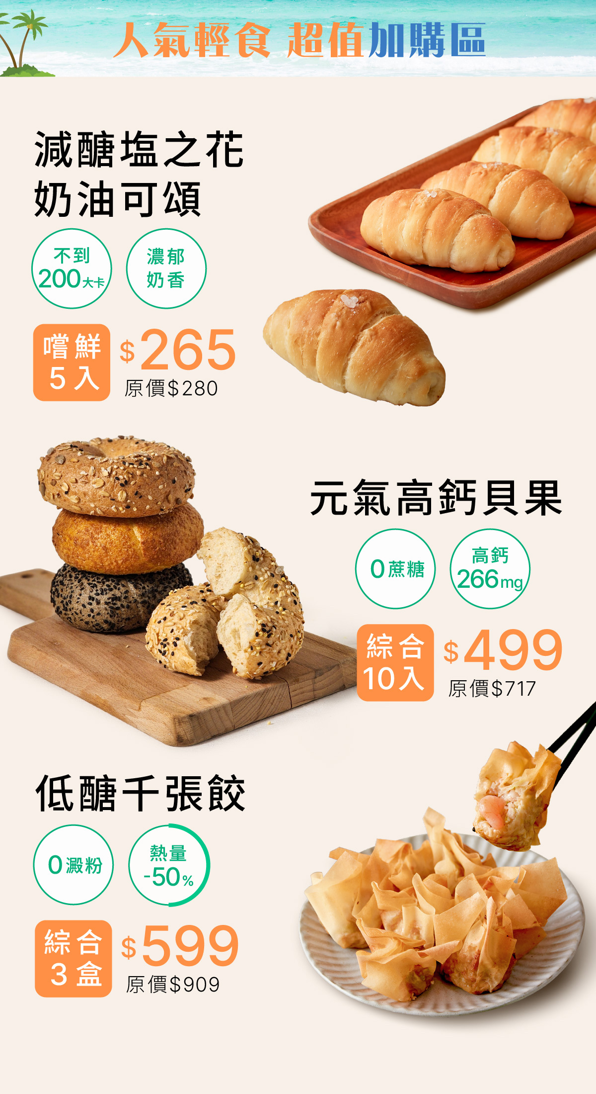 5.單筆消費折抵後滿$2,899再贈減醣塩之花奶油可頌1入