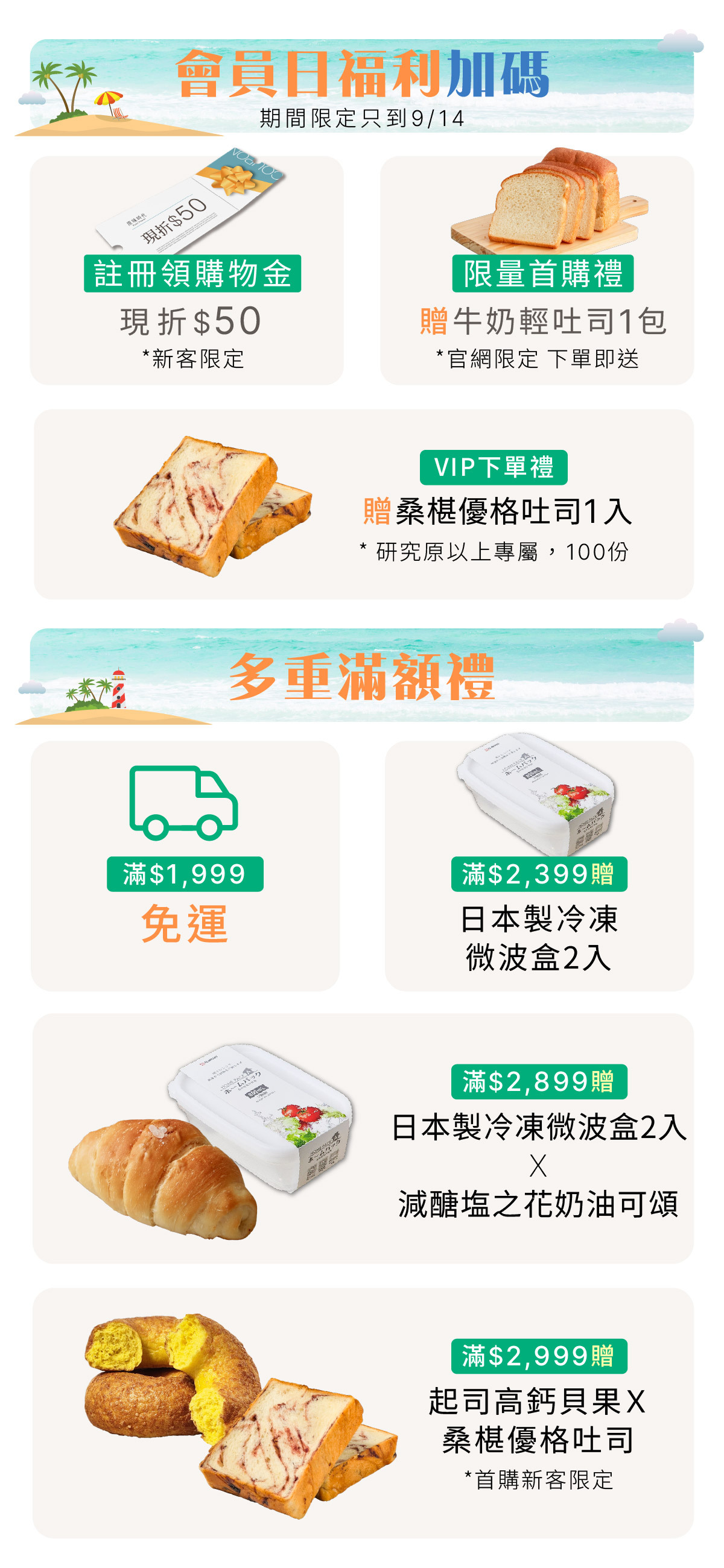 7.研究原會員:單筆消費折抵後滿$3,300加碼贈牛奶輕吐司1袋
