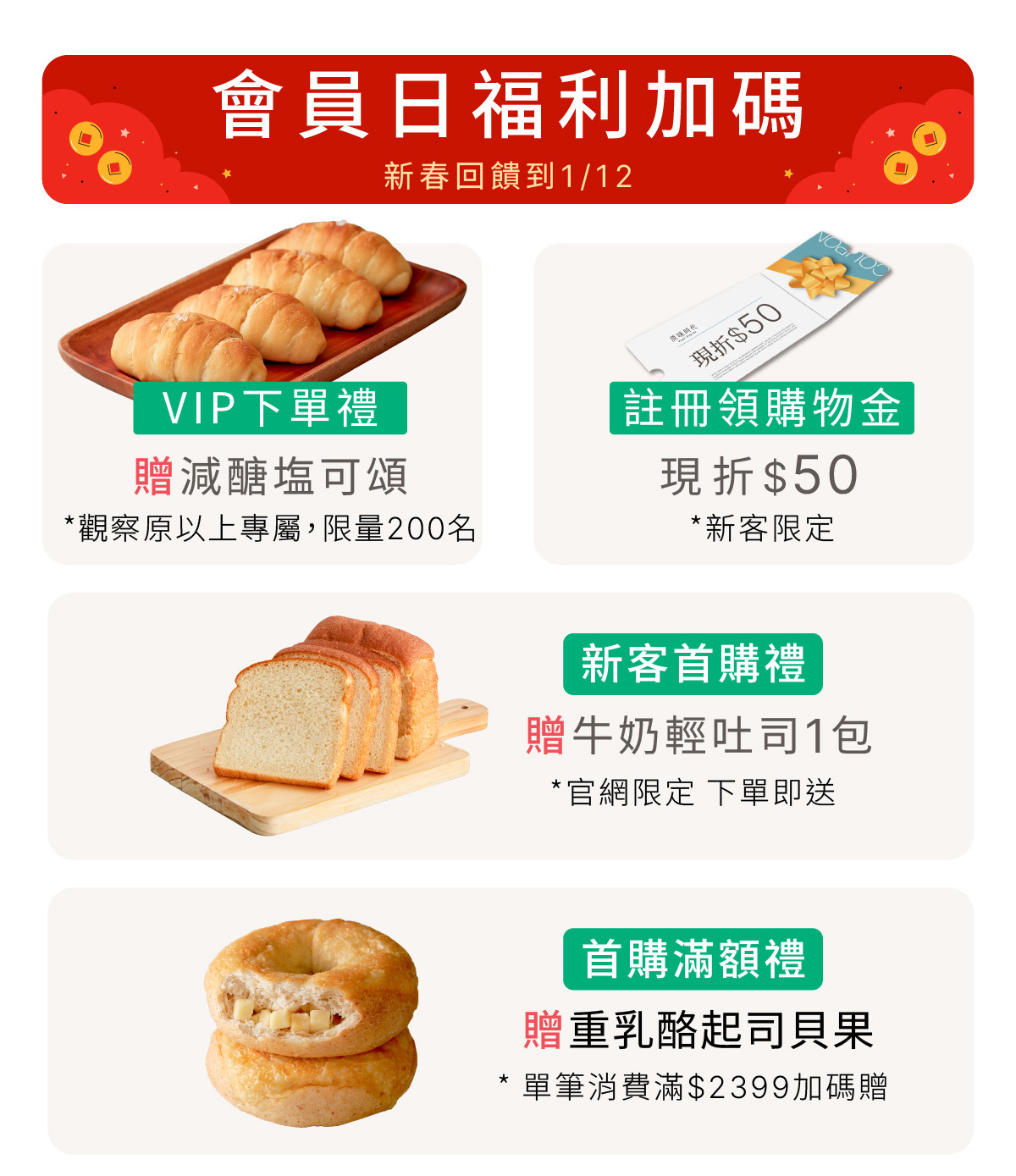 2.首購新客下單贈牛奶輕吐司1包 *限冷凍商品
