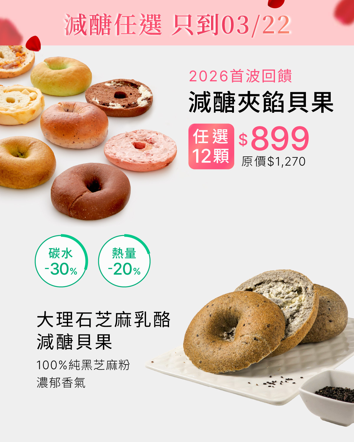 6.單筆消費折抵後滿$2,999再贈草莓乳酪減醣貝果1入