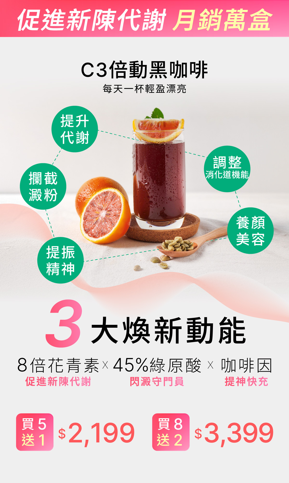8.單筆消費折抵後滿$7,999再贈C3倍動黑咖啡1盒