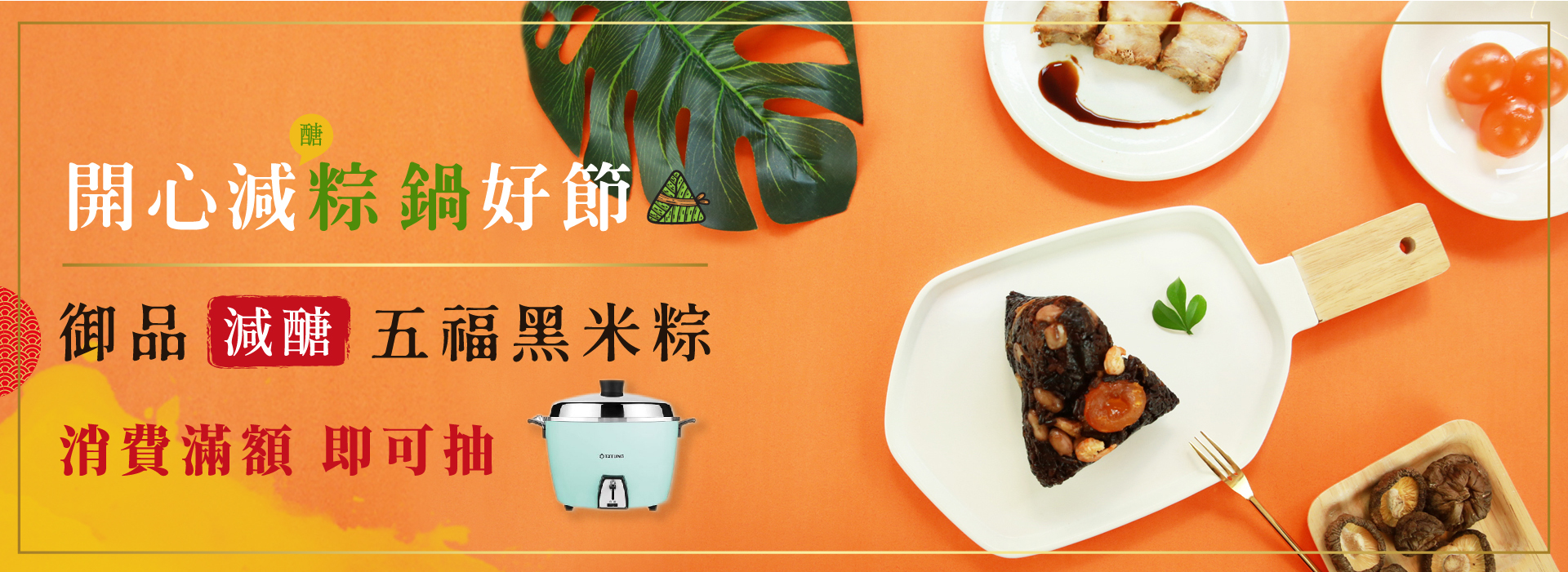 購買【減醣黑米粽】並消費滿千,即可抽時尚電鍋!