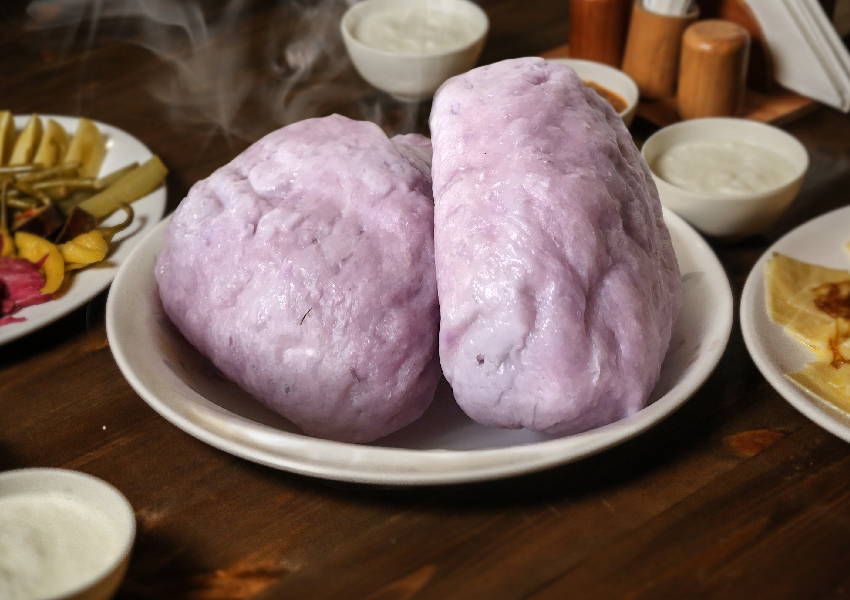 顆顆山藥饅頭是外婆心中的寶貝,用刀一刨刨地削著親手栽種的山藥,將其打成黏稠滑順的夢幻紫泥狀,再加入完美比例的麵粉後,用長滿繭的雙手費勁地揉捏,來來回回重覆著,顆顆汗珠從額頭冒出,直到麵團呈現Q彈蓬鬆的狀態才算完成一半。