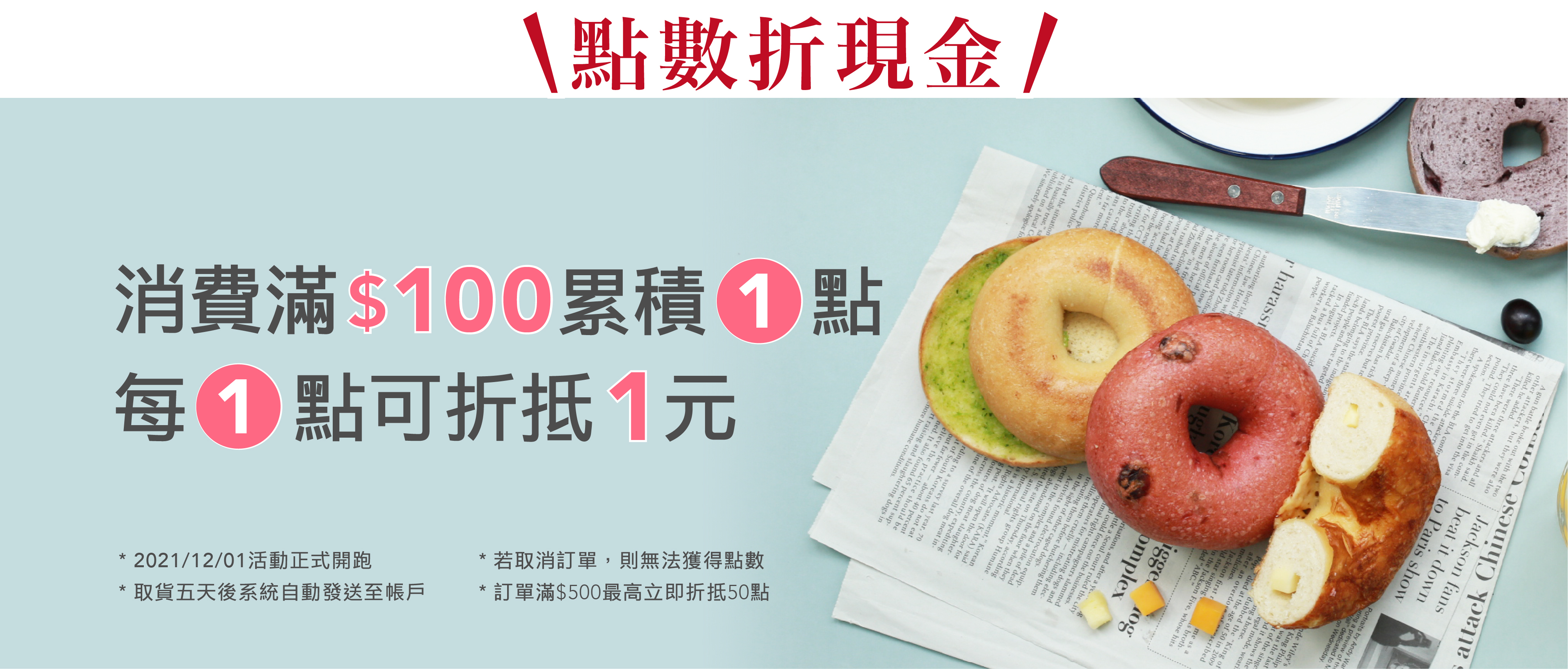 2.消費滿$100累積1點,每1點可折抵1元