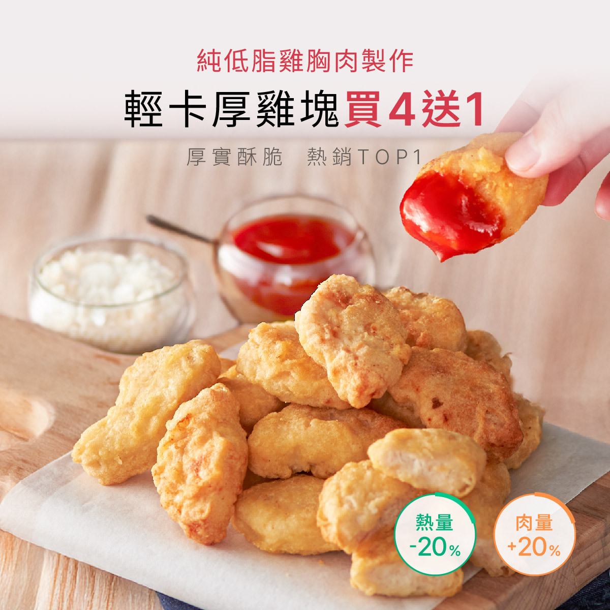 雞胸肉製作,肉量增加20%、熱量減少20%