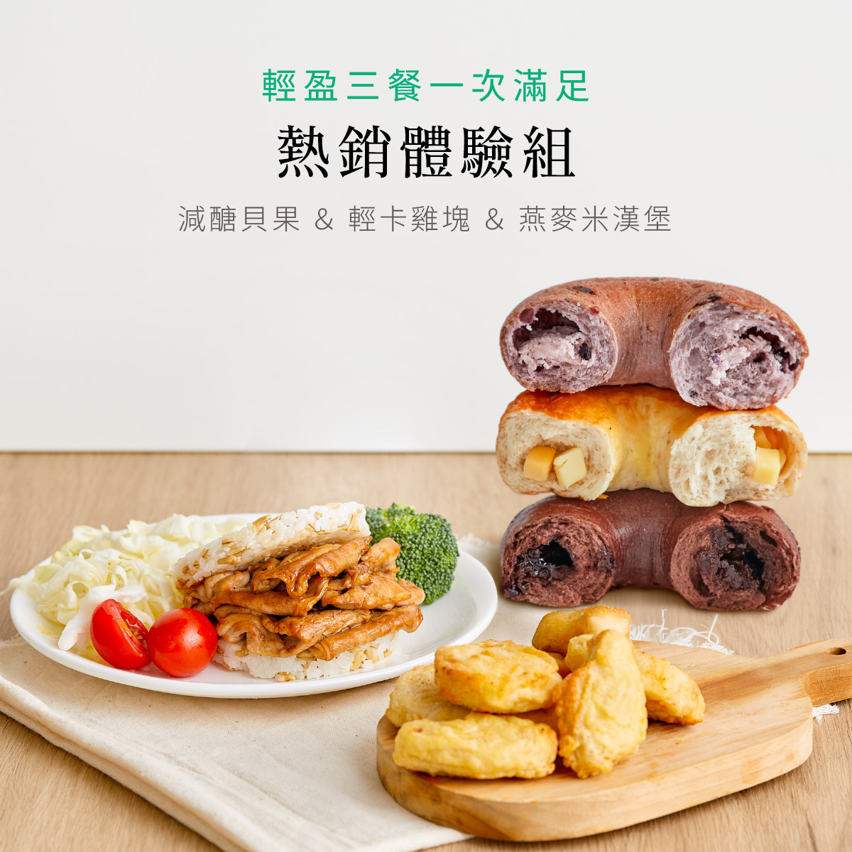 減醣貝果+輕卡厚雞塊+🆕燕麥米漢堡