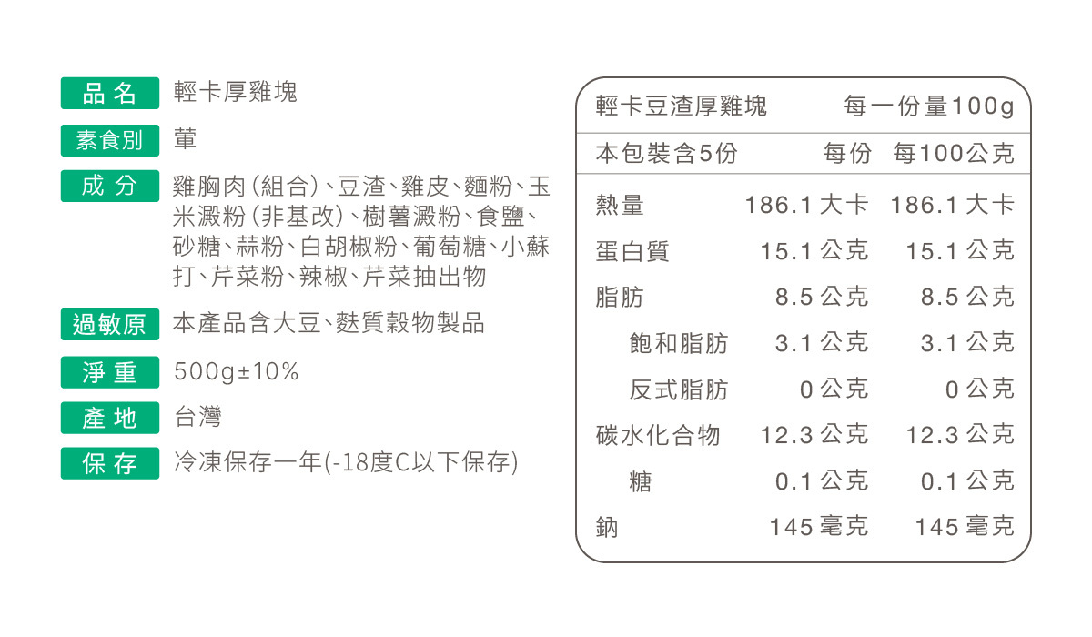 麵粉、全麥麵粉、水、非基改豆渣、赤藻糖醇、小麥胚芽、橄欖油、鹽、酵母