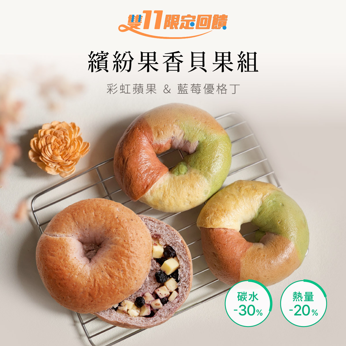 至2025-12-01T02:00:00.000+00:00截止 全店,雙11|折後滿2999[贈]大理石芝麻乳酪減醣貝果1入*限冷凍商品