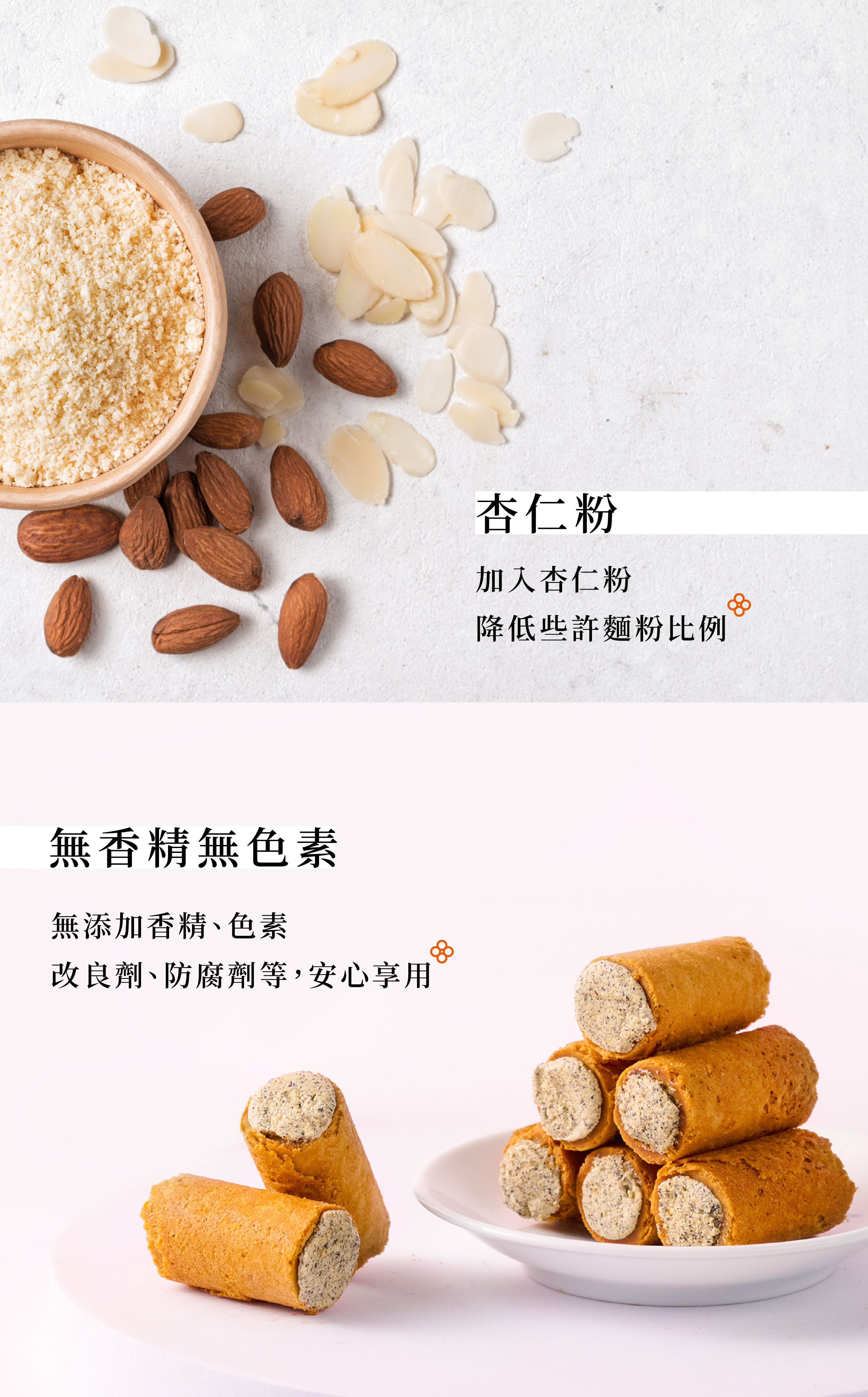蛋捲獨家使用天然椰糖,搭配日本昭和薄力粉、安佳無水奶油,酥脆細緻更散發淡淡焦糖香