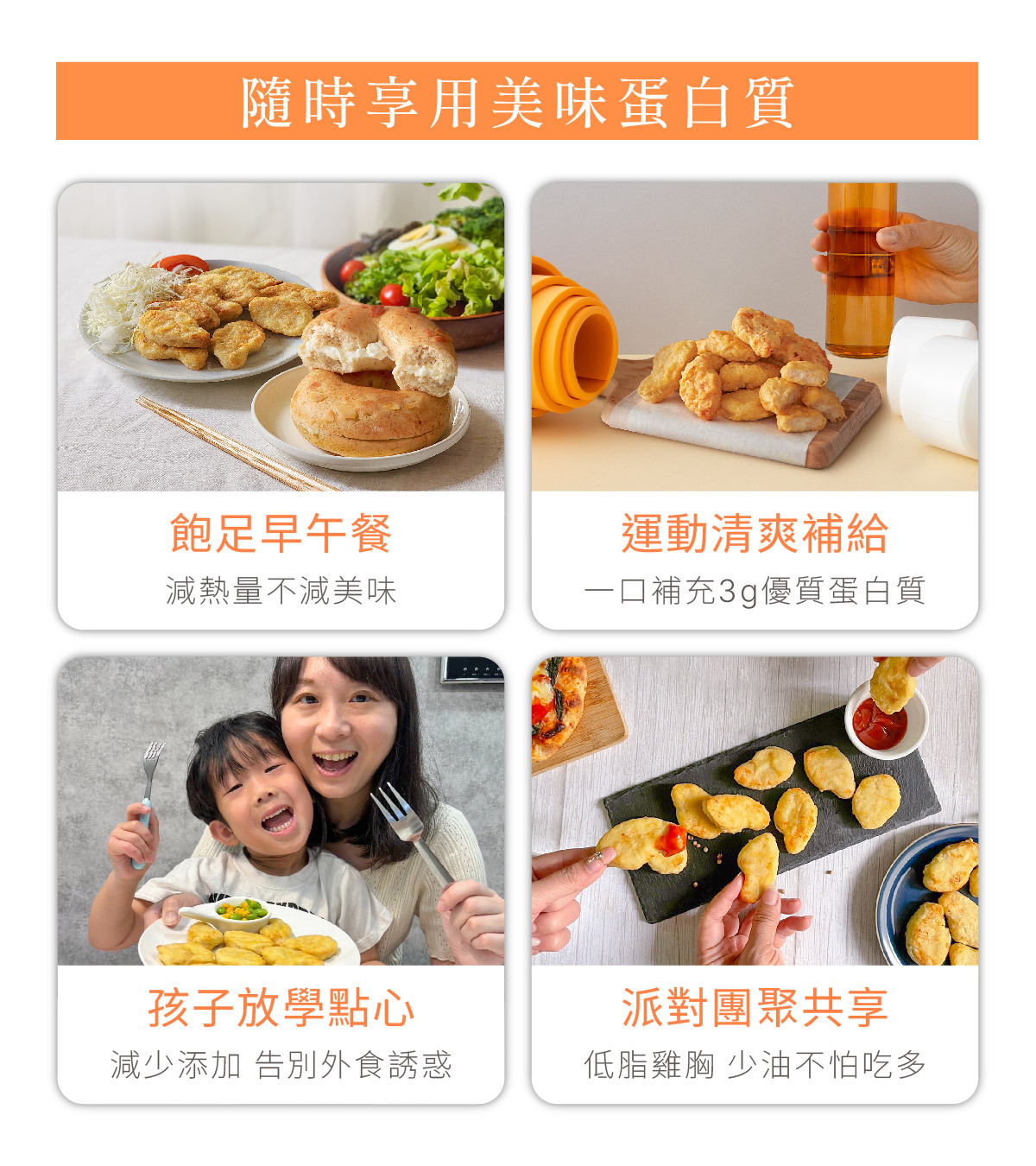 【烤箱】不需退冰,溫度200度烤10~12分鐘左右(雞塊不要重疊)